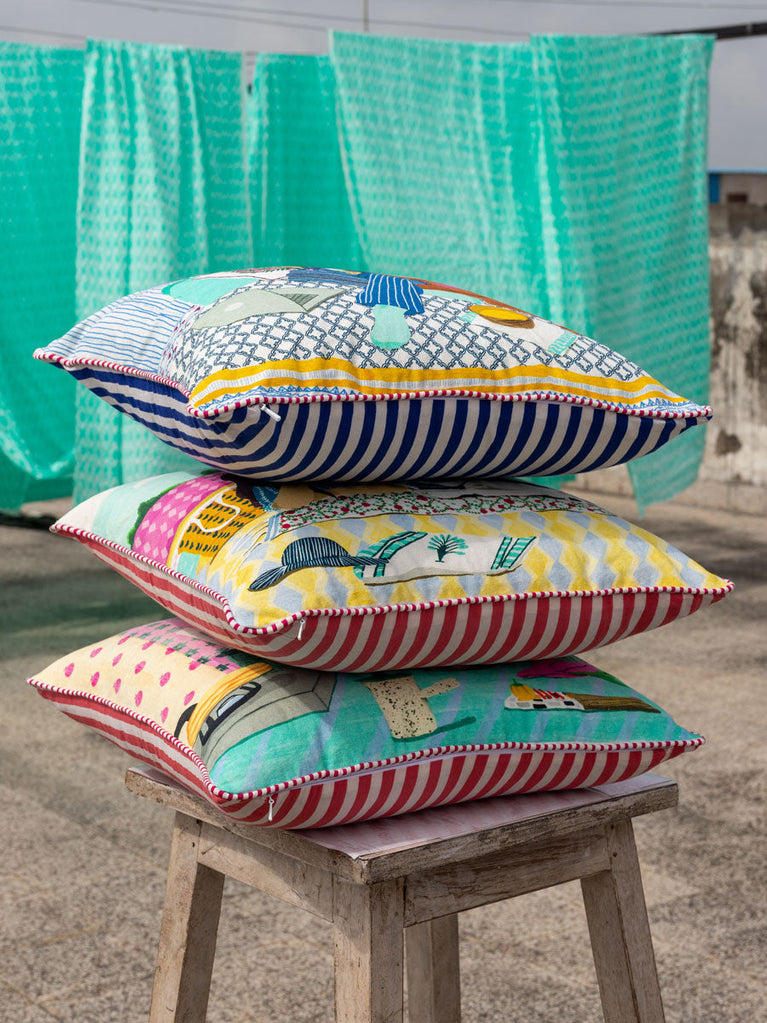 Pinar Block Printed Cotton Cushion Cover - 16 Inch