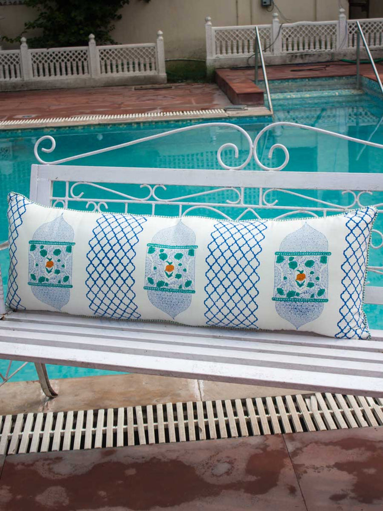 Noor Block Printed Cotton Cushion Cover - 16 X 48 Inch