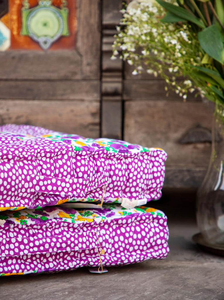 Romantic Lavender Block Printed Cotton Cushion Cover - 16 Inch