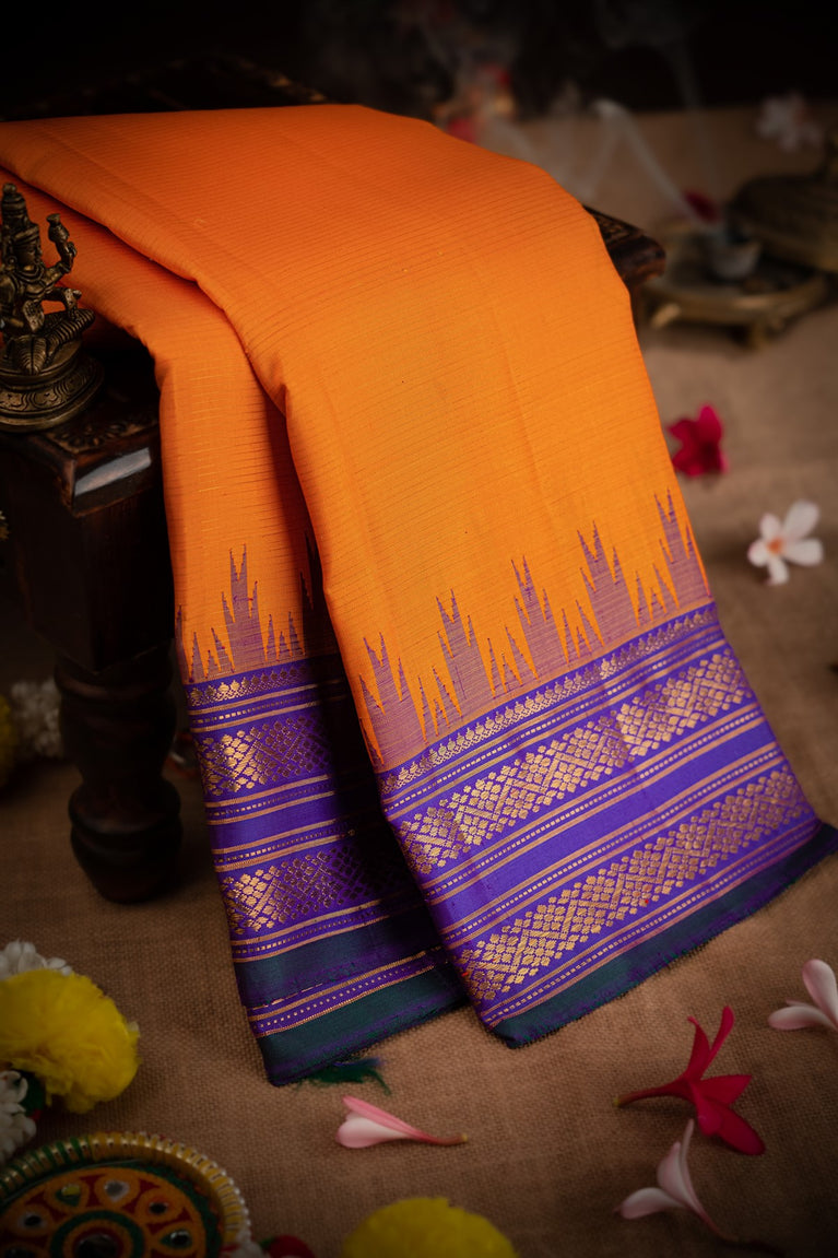 Varamahalakshmi Orange & Violet Kancheepuram Lines Saree