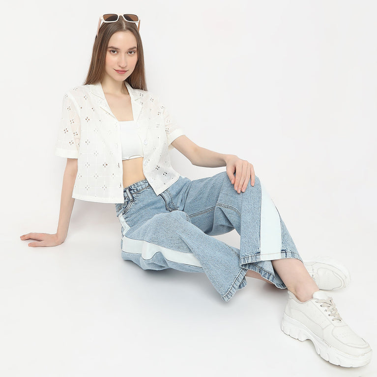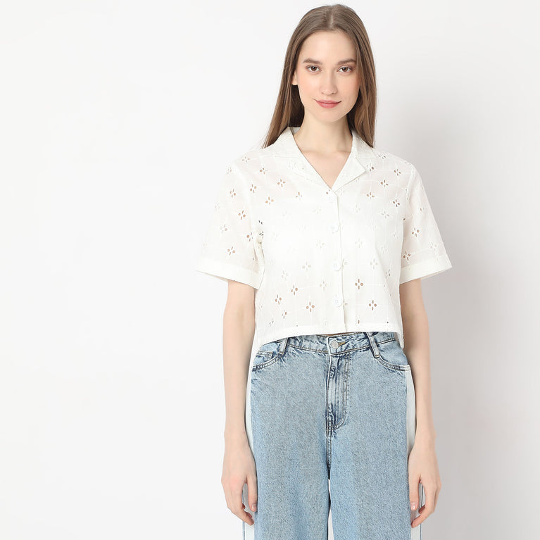 All Over Schffli Shirt Made With Comfortable Fabric Lapel Collar Shirt