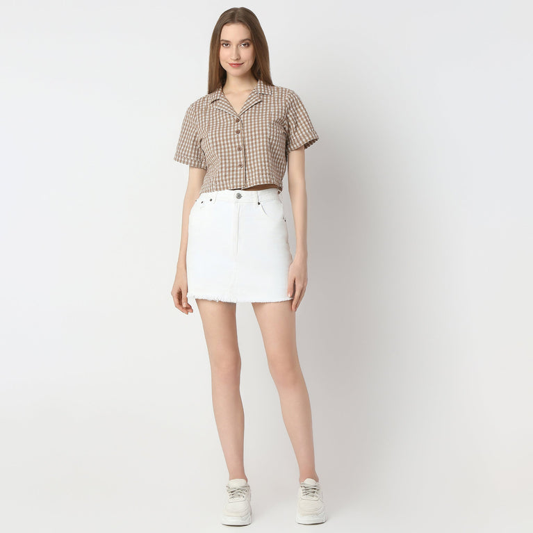 These checkered pattern regular fit skirts has above knee length, high rise waist. Made from cotton, it is soft and comfortable to wear.