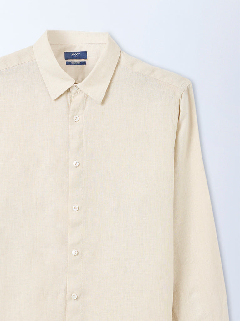 Light and breathable for warmer days, Ascot presents this beige shirt cut in a relaxed fit. The design features a classic collar, a buttoned placket and full sleeves for a clean profile. Crafted from linen fabric, it offers comfort suited to casual settings and laid-back occasions.
