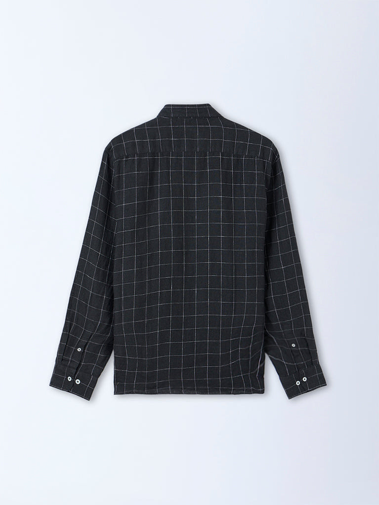 This black linen shirt by Ascot is crafted for breathable comfort and everyday ease. Accented with a subtle check pattern, it features a button-down collar and full sleeves for a timeless finish. Cut in a relaxed fit, it pairs effortlessly with jeans or tailored trousers, making it suitable for both formal and semi-formal settings.