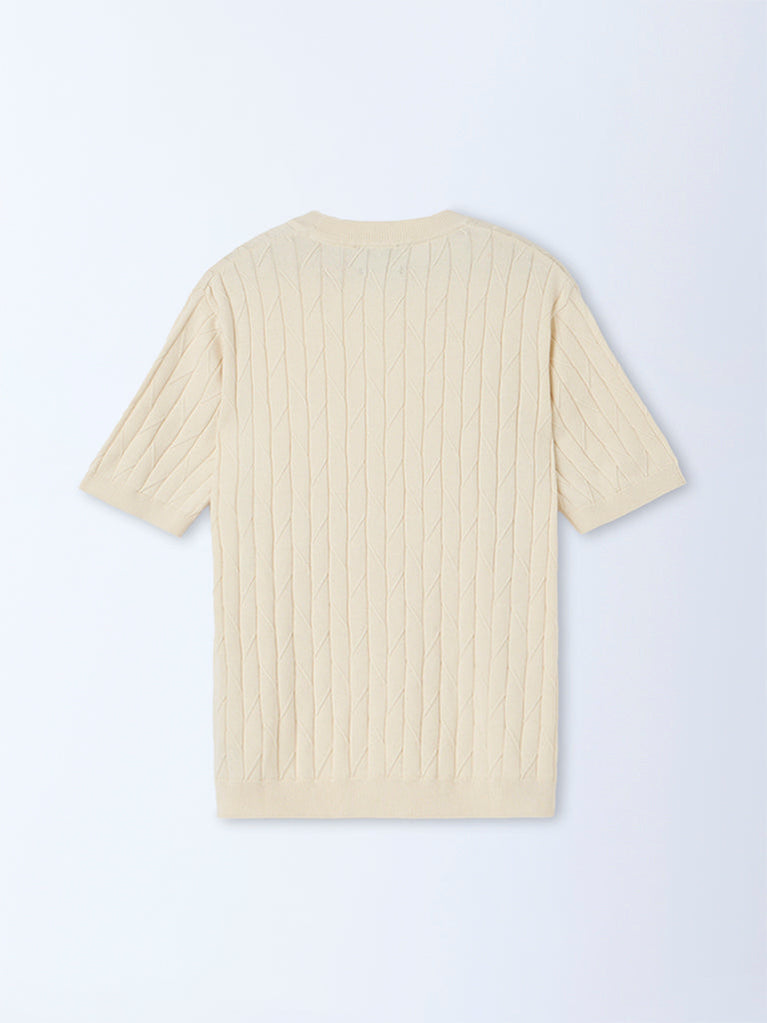 Ascot Beige Knit-Textured Relaxed-Fit Cotton T-Shirt
