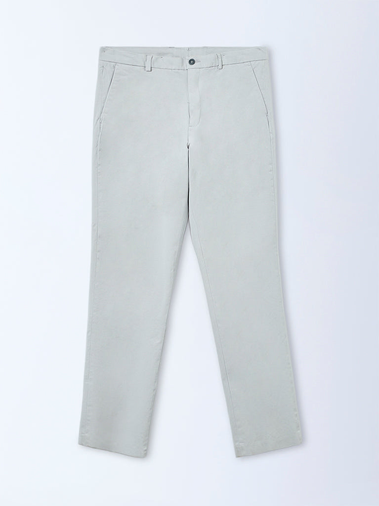 Ascot Light Grey Mid-Rise Relaxed-Fit Cotton-Blend Chinos