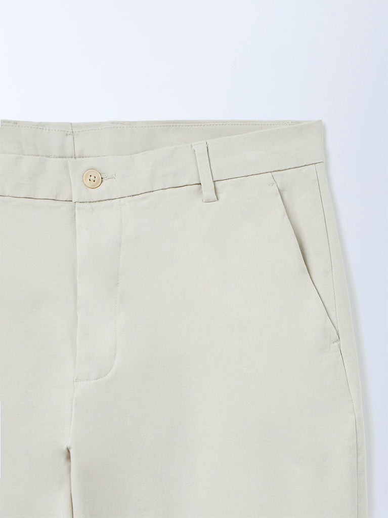 Ascot Light Beige Mid-Rise Relaxed-Fit Cotton-Blend Chinos