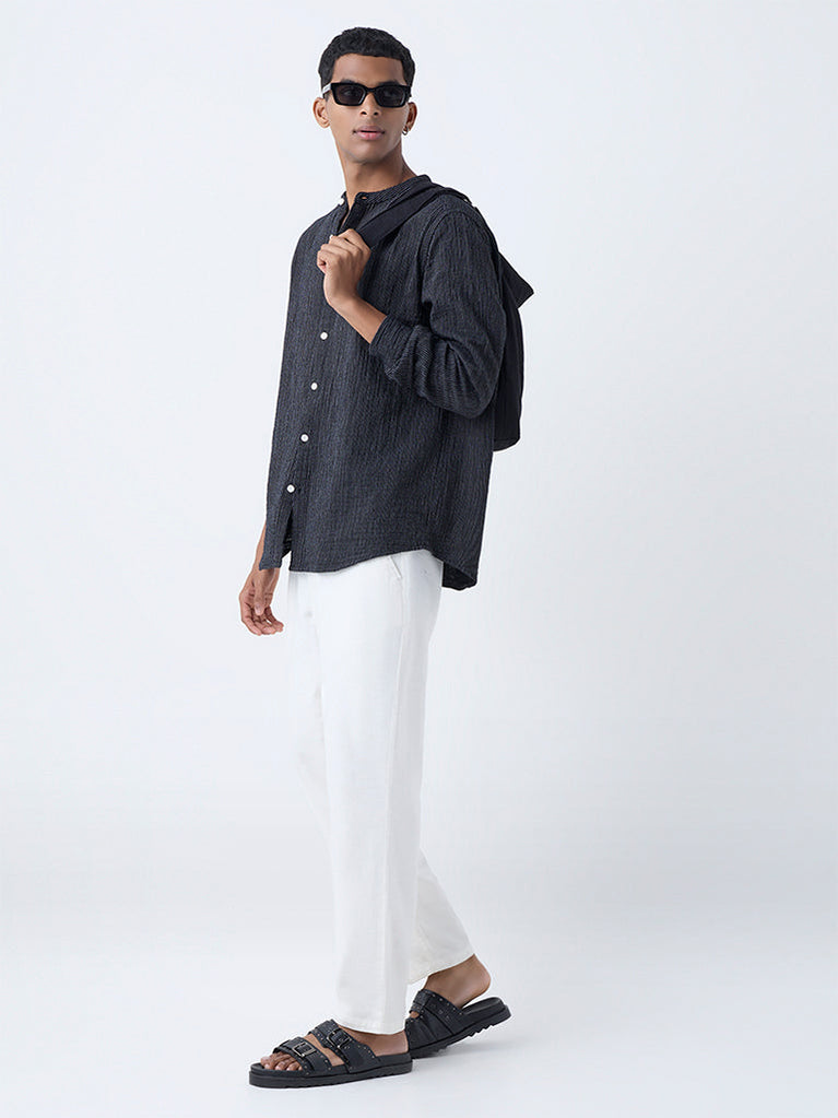 ETA Black Stripe Printed Relaxed-Fit Cotton Shirt