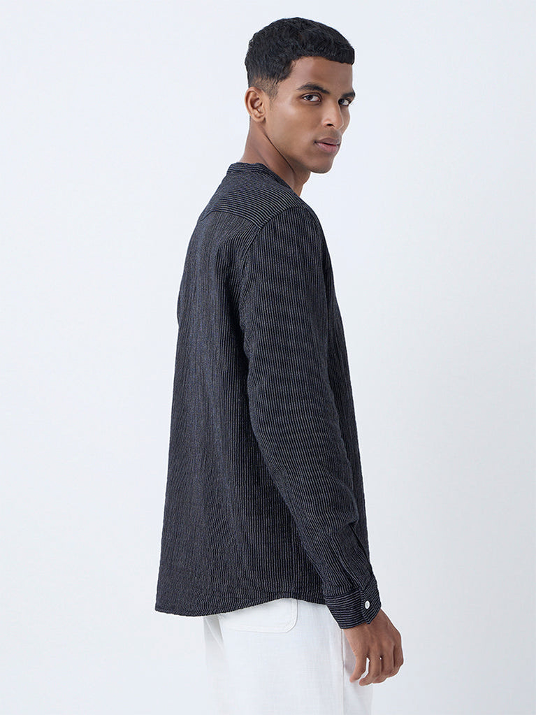 ETA Black Striped Relaxed-Fit Cotton Shirt