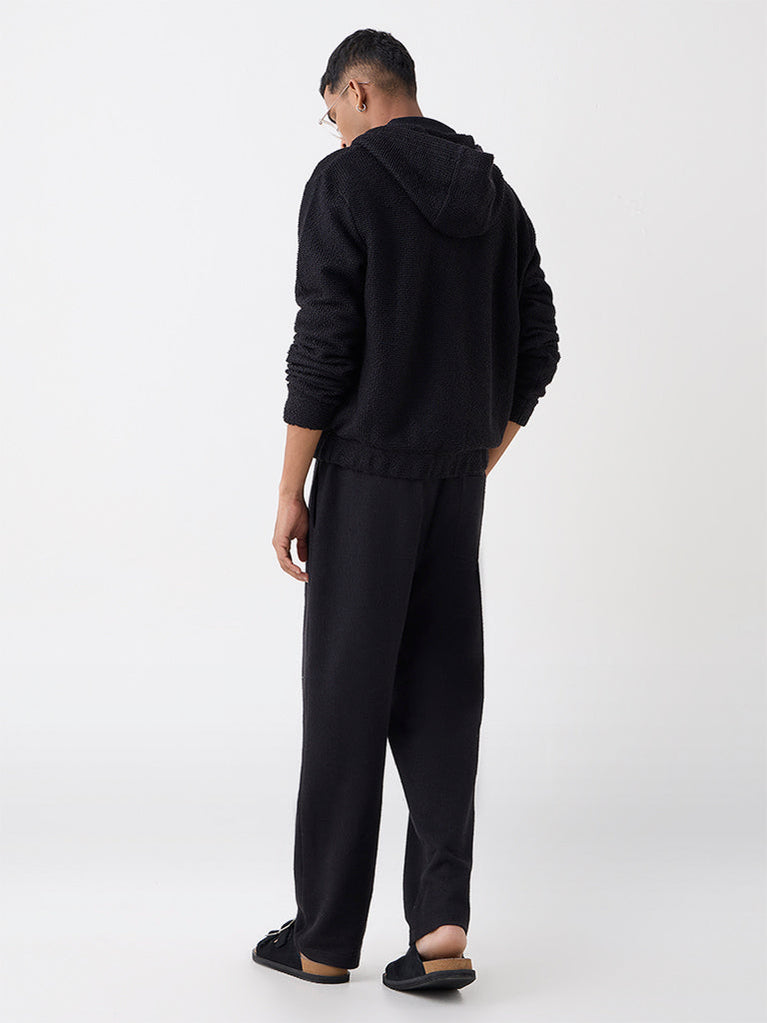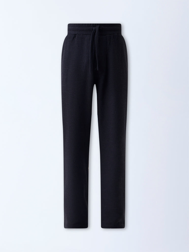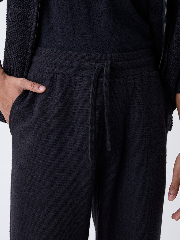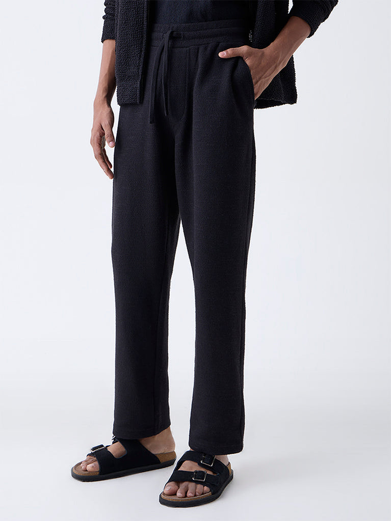 ETA Black Textured Relaxed-Fit Mid-Rise Cotton-Blend Pants