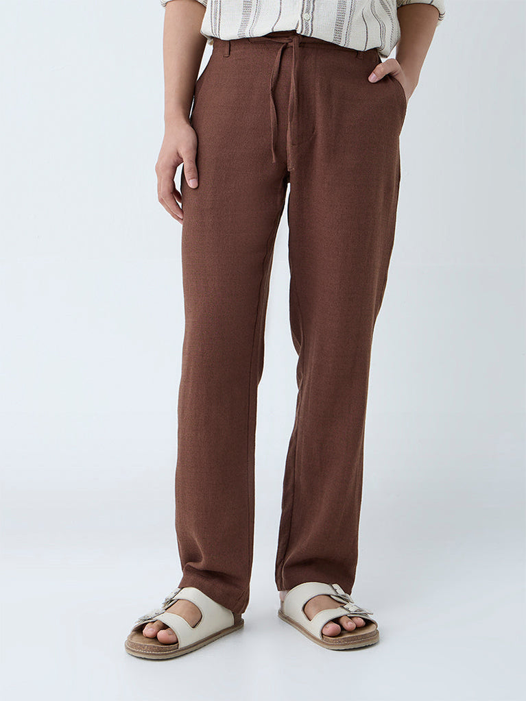 ETA Brown Solid Relaxed-Fit Mid-Rise Pants