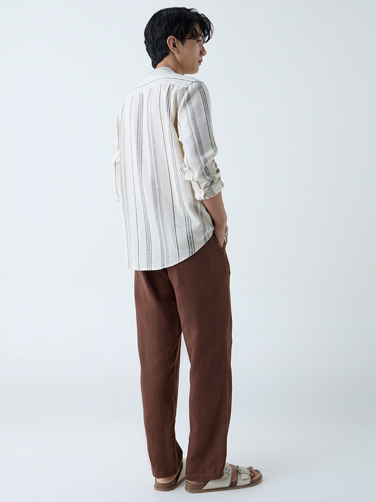 ETA Brown Striped Relaxed-Fit Cotton Shirt