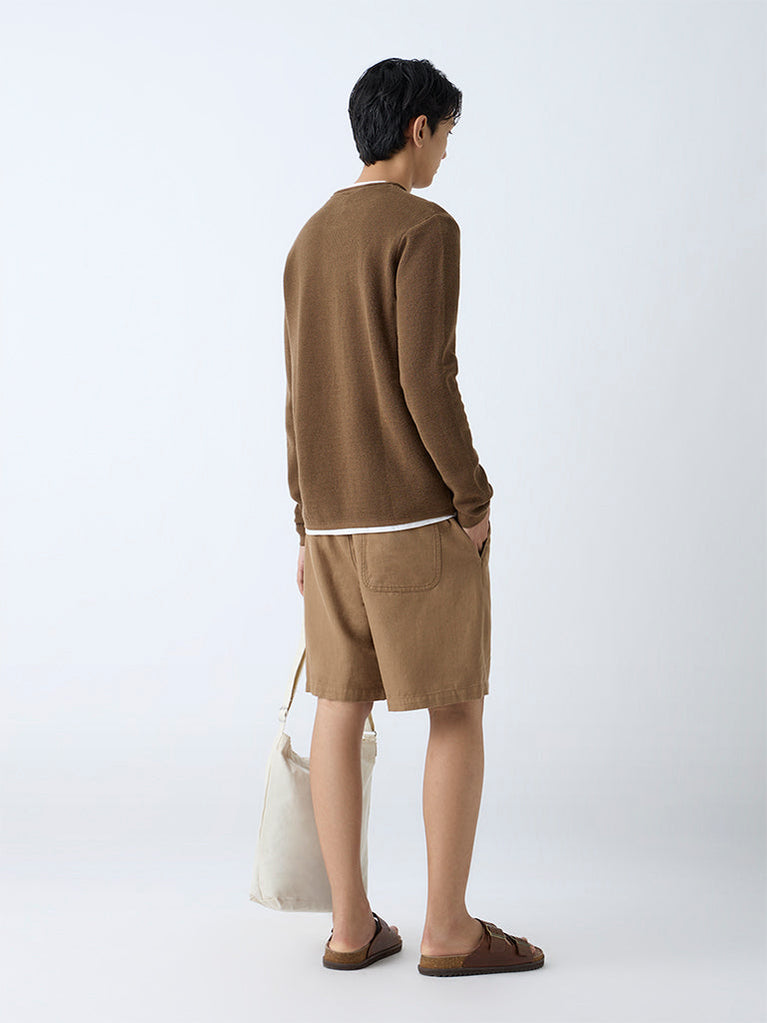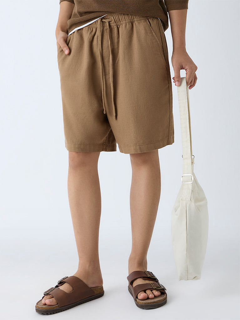 ETA Brown Solid Relaxed-Fit Mid-Rise Cotton Shorts