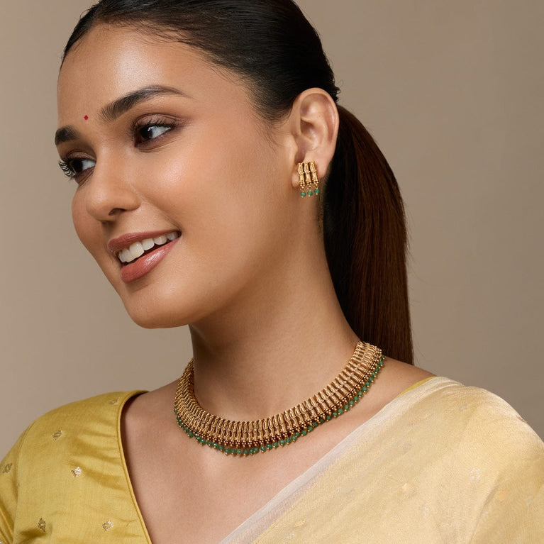 And what’s Onam without a touch of gold? Pair your favorite jewelry with this saree to complete your Onam look.