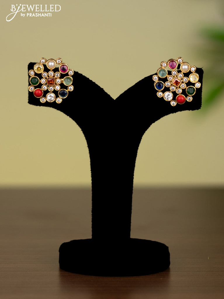 Antique attigai necklace with navaratna & cz stones and pearl hangings