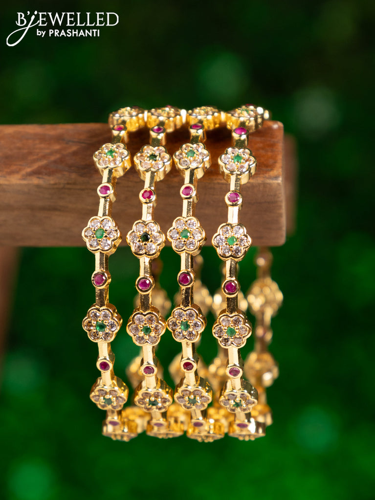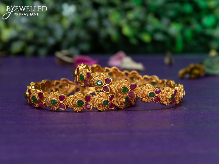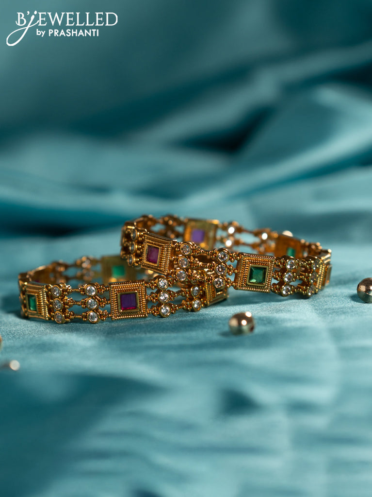 Antique bangles floral design with kemp and cz stones