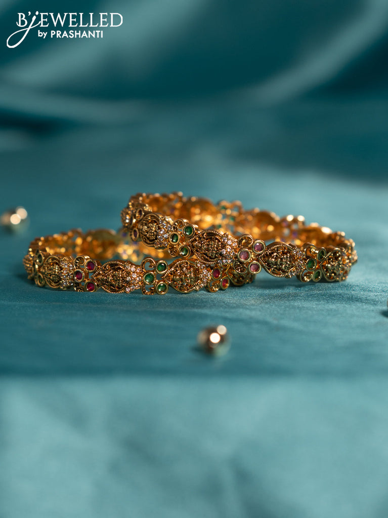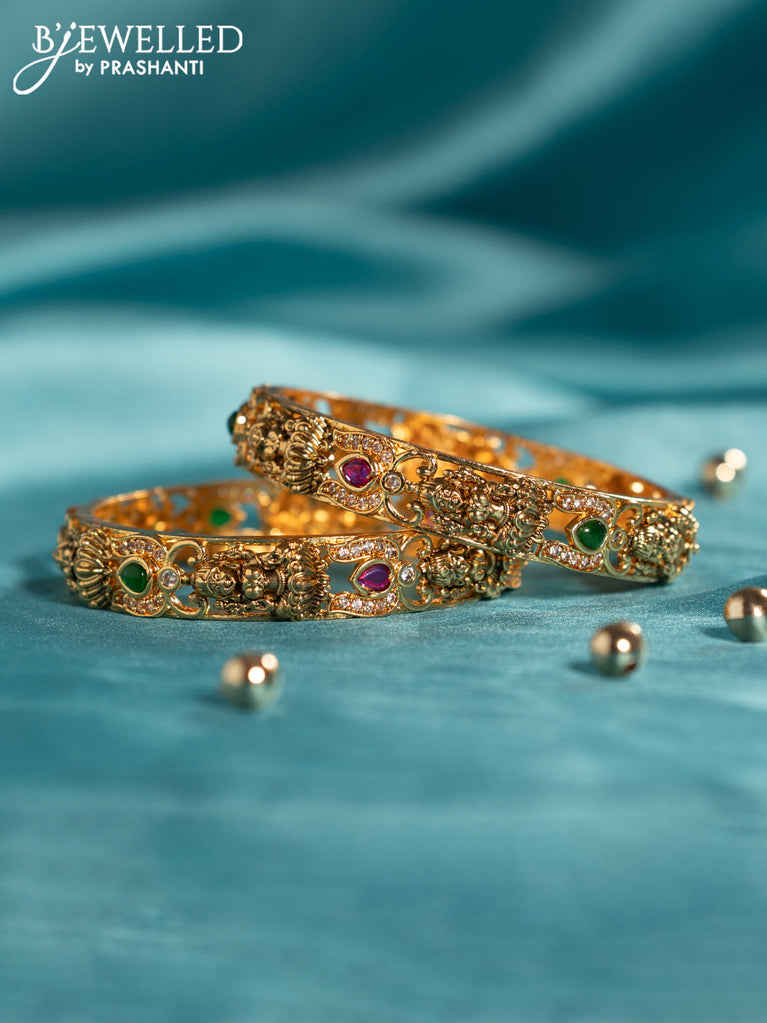 Antique bangles lakshmi design with kemp and cz stones