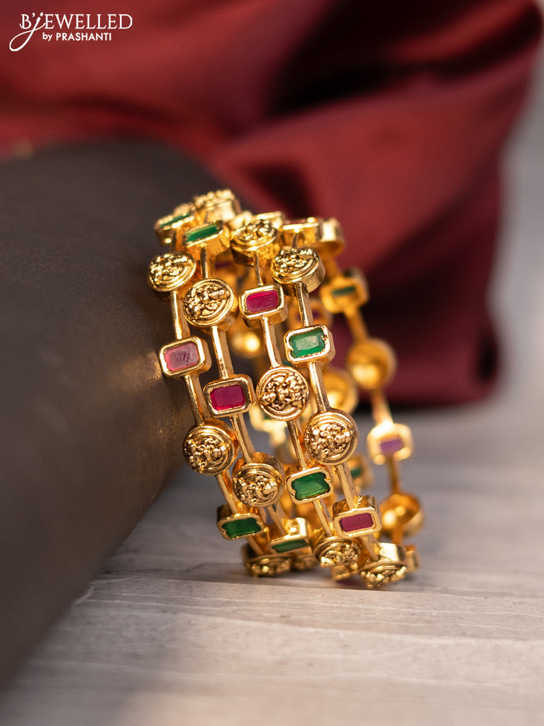 Antique bangles with lakshmi design and kemp stones
