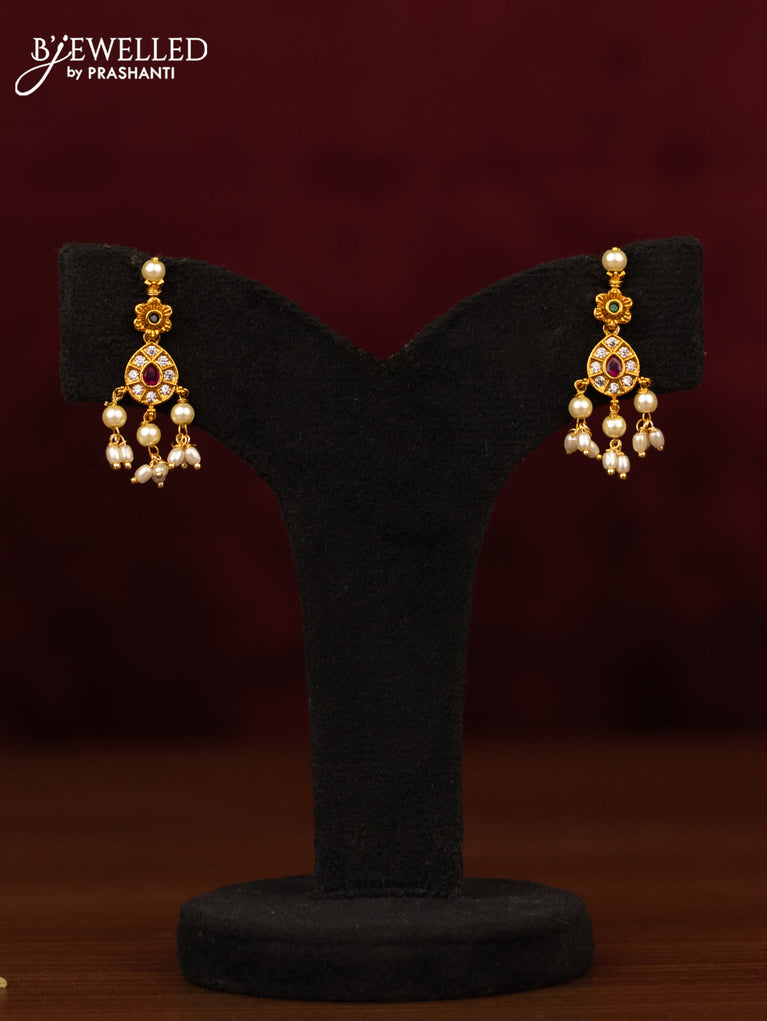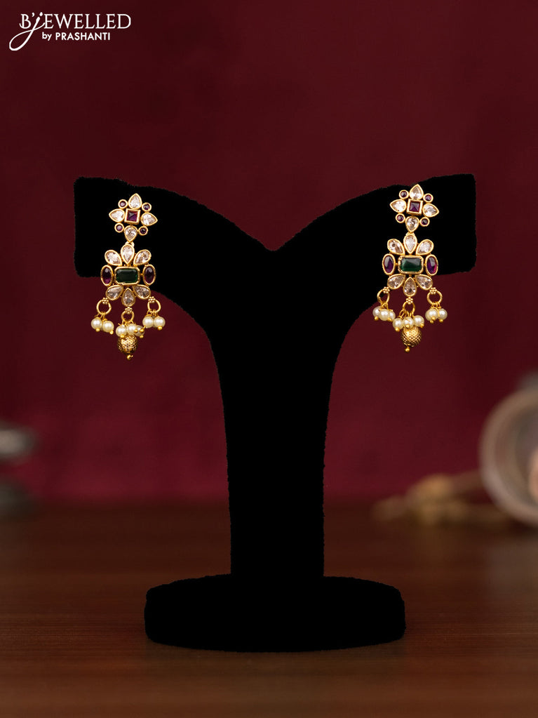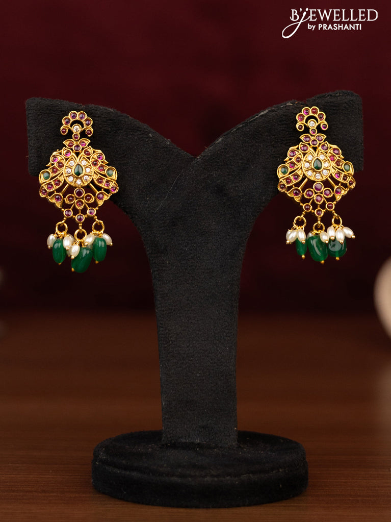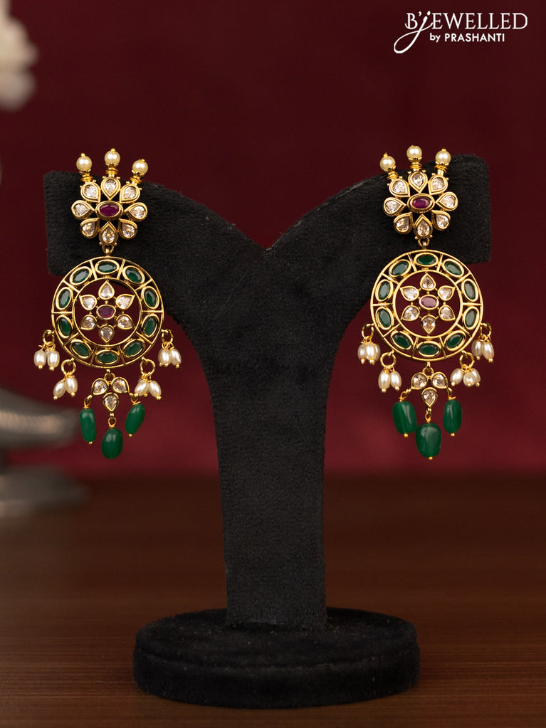 Antique guttapusalu necklace with kemp & cz stones and pearl & golden beads hanging