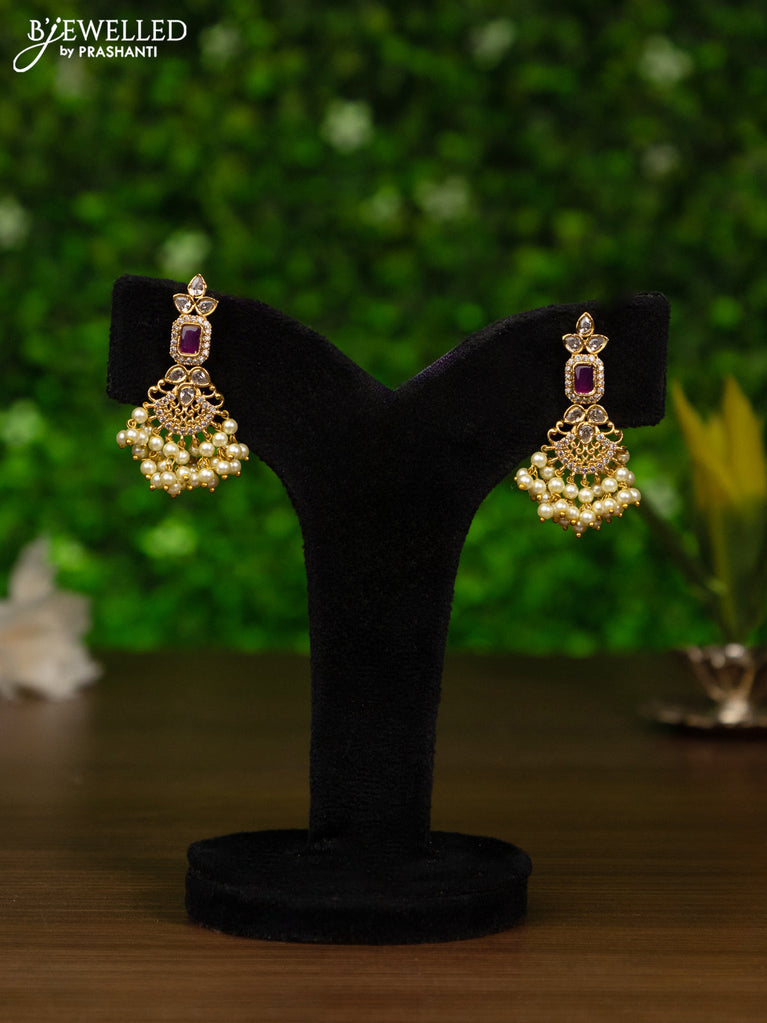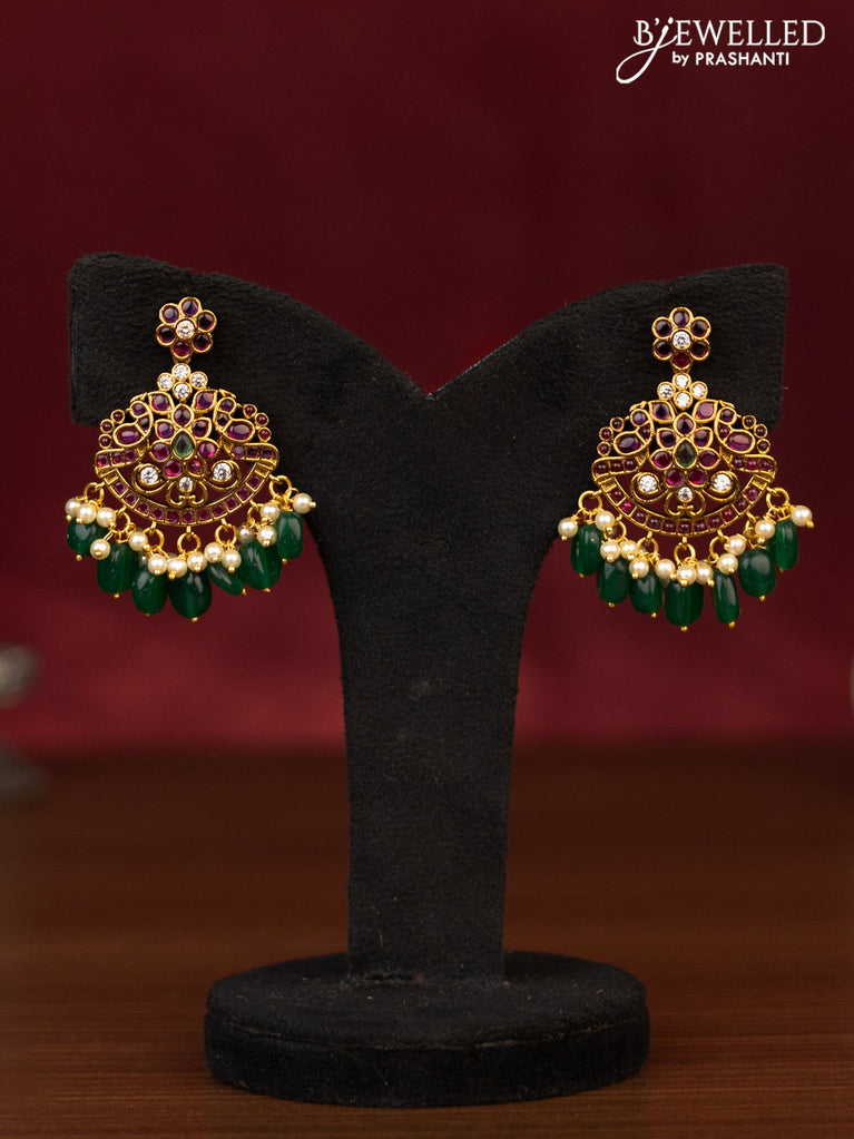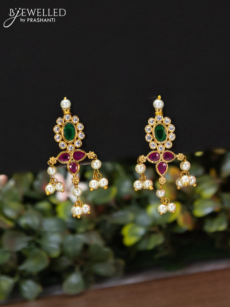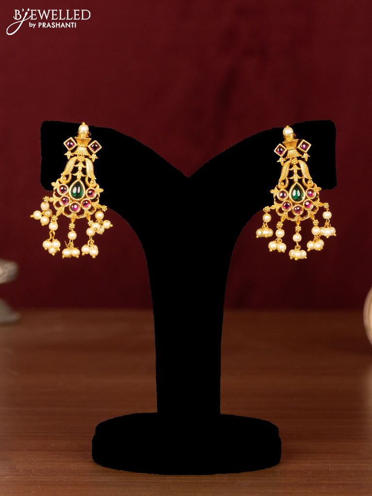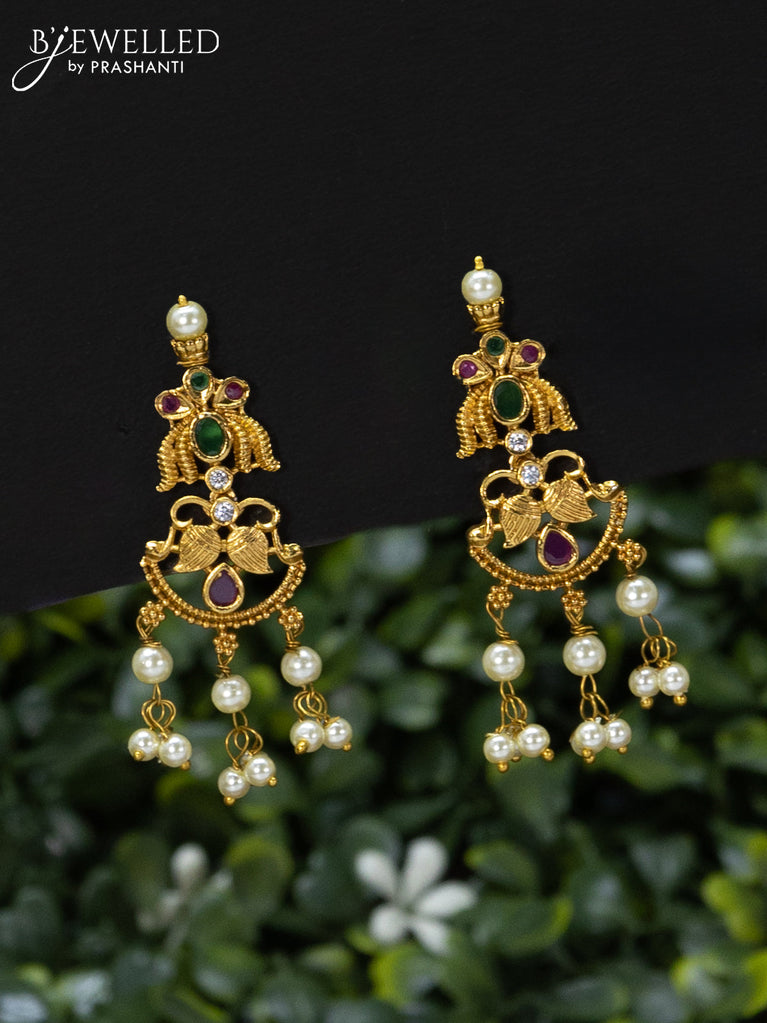 Antique guttapusalu necklace with kemp & cz stones and pearl & golden beads hanging