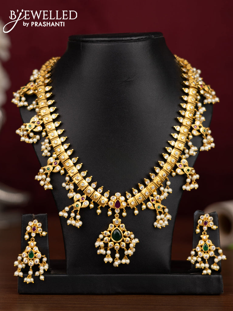 Antique guttapusalu necklace with kemp & cz stones and pearl hangings without earrings