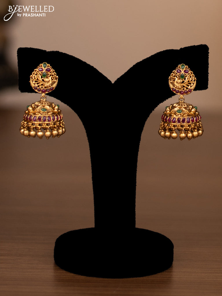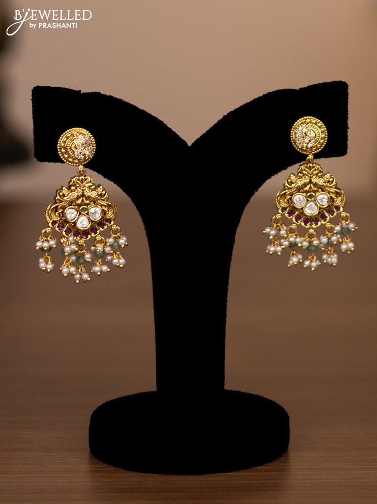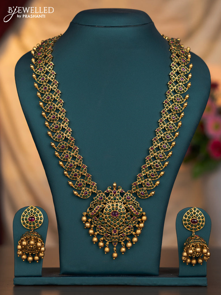 Antique haaram peacock & maanga pattern with kemp stones and golden beads hanging