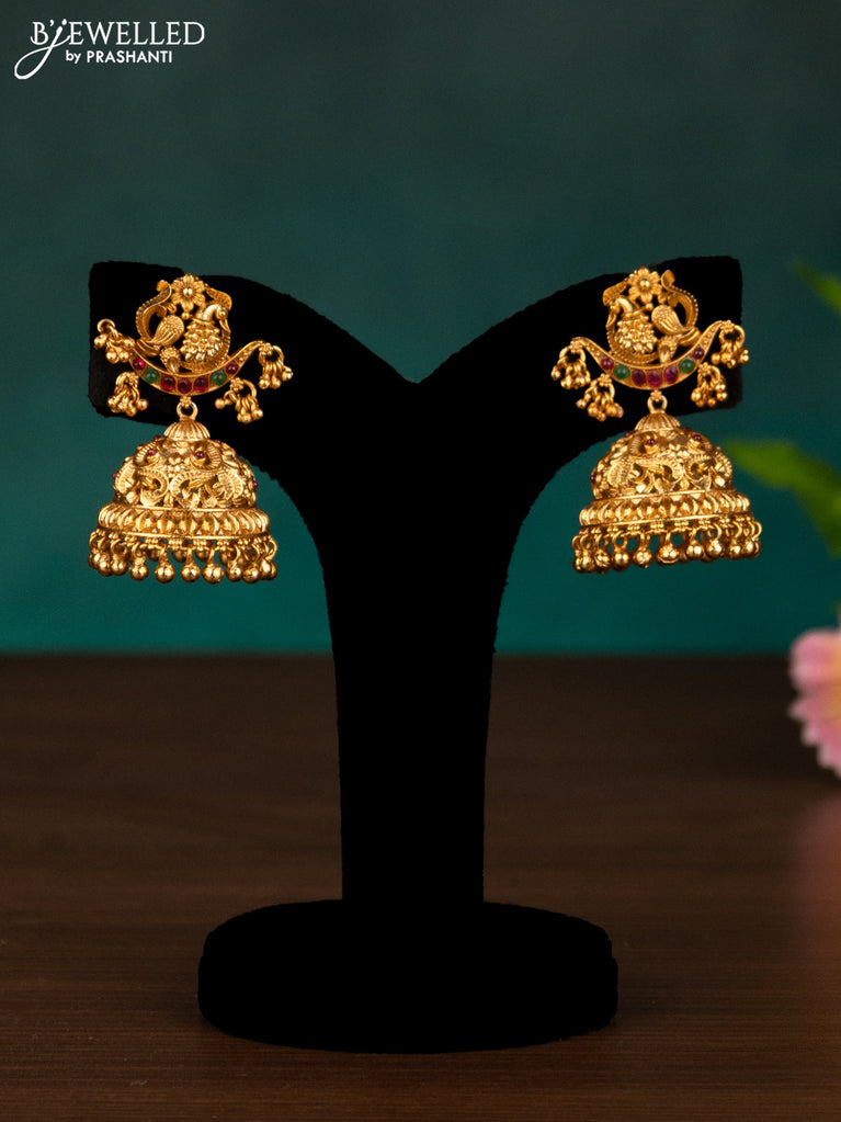 Antique haaram ram parivar & peacock design with kemp stones and golden beads hangings