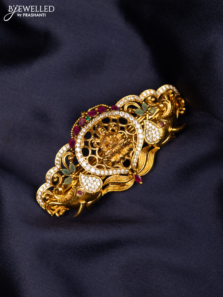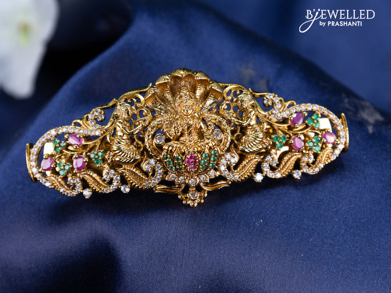 Antique hair clip big size lakshmi design with kemp and cz stones