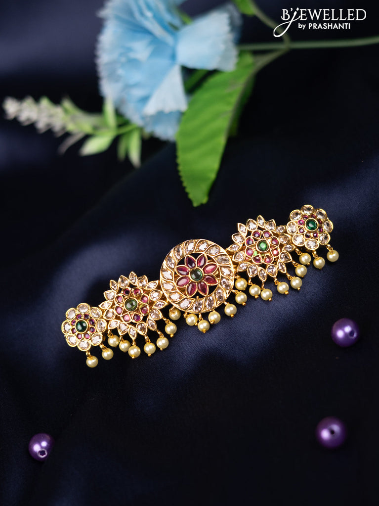 Antique hair clip medium size lakshmi design with kemp & cz stones and pearl hangings