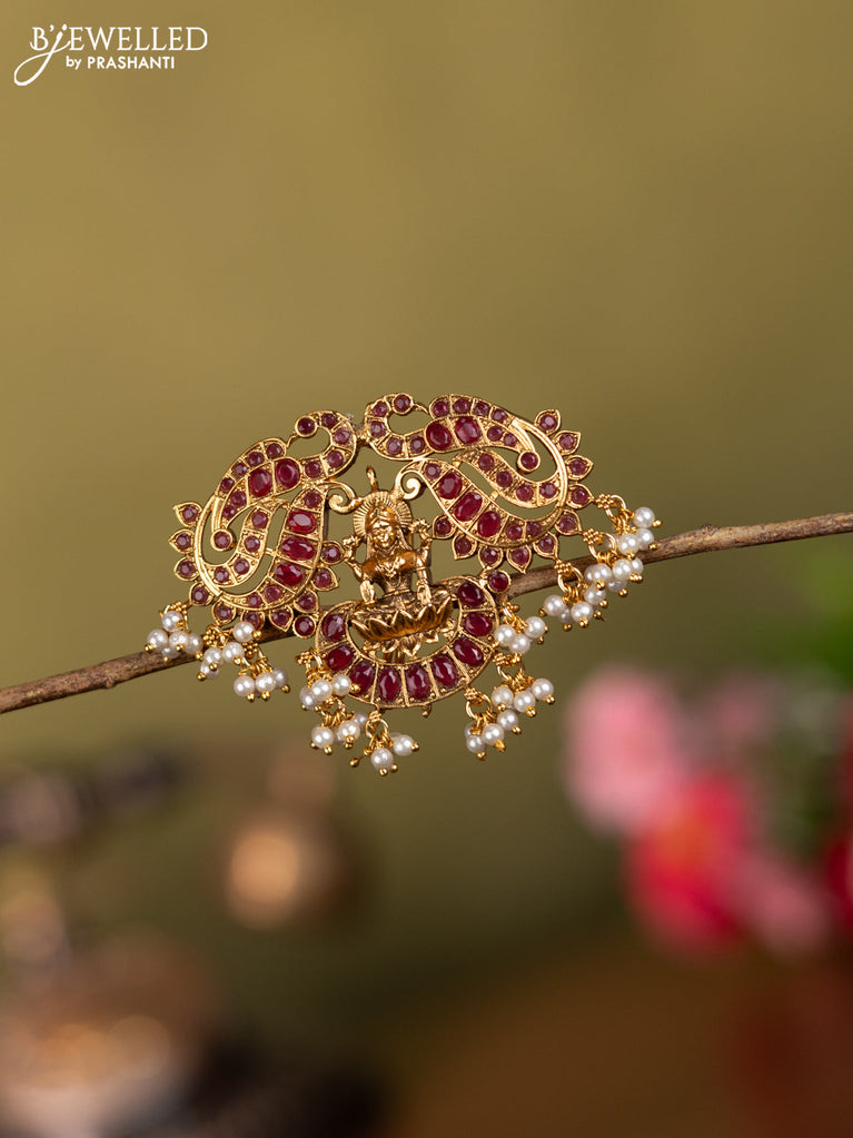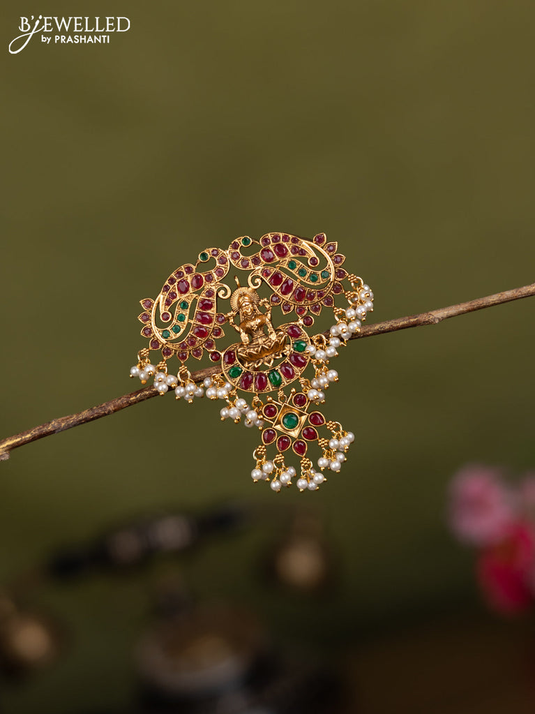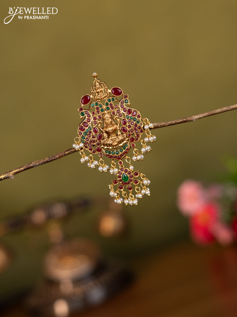 Antique jada billai lakshmi & peacock design with kemp stones and pearl hanging