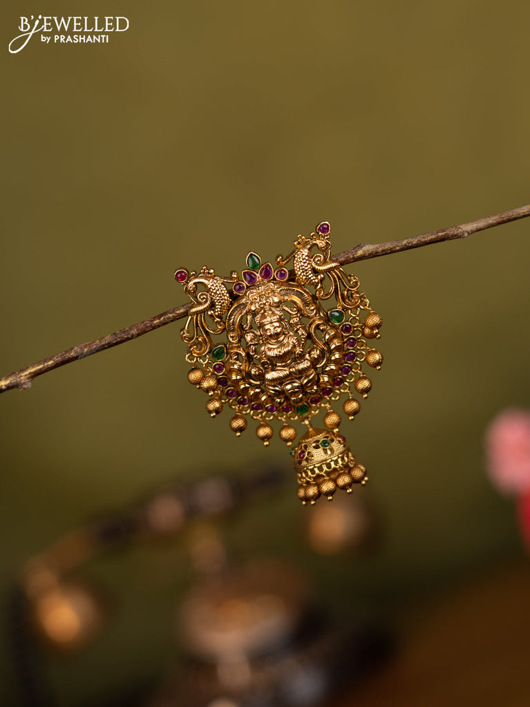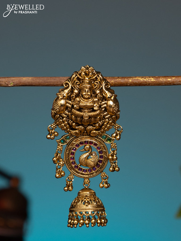 Antique jada billai lakshmi & peacock design with pink kemp stones and golden beads hangings