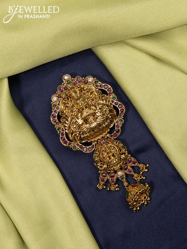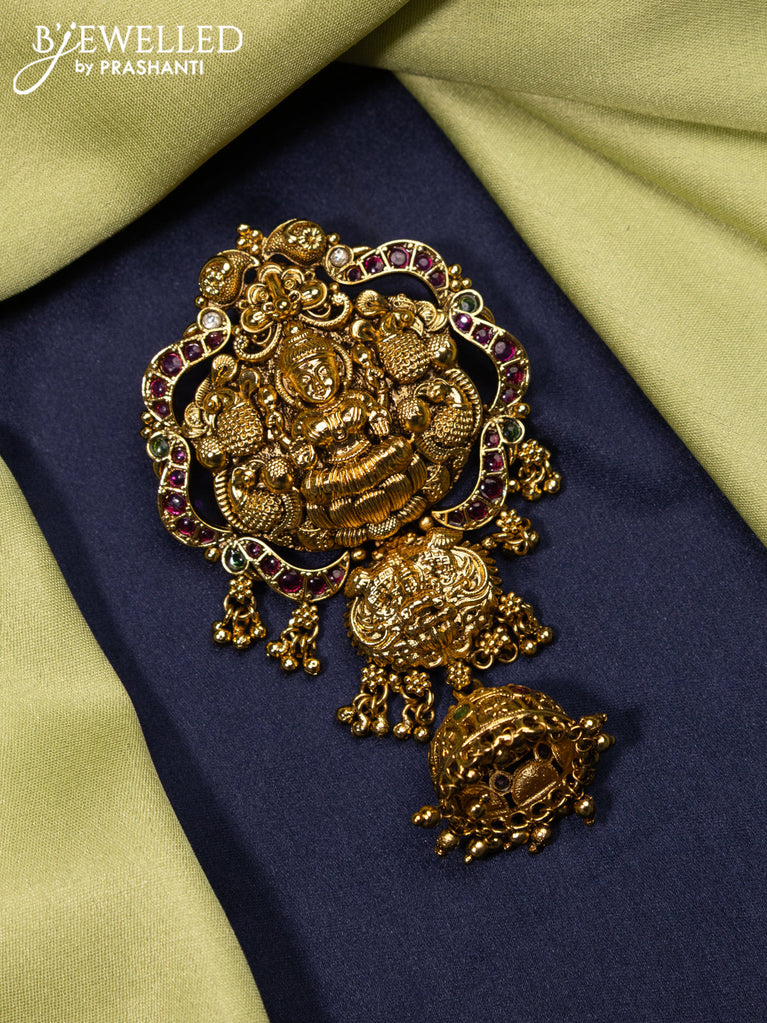 Antique jada billai lakshmi design with kemp stones and golden beads hanging