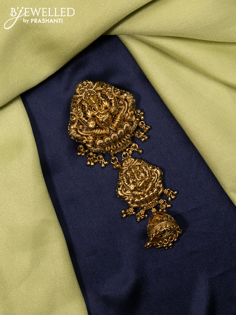 Antique jada billai ganesha design with kemp stones and golden beads hanging