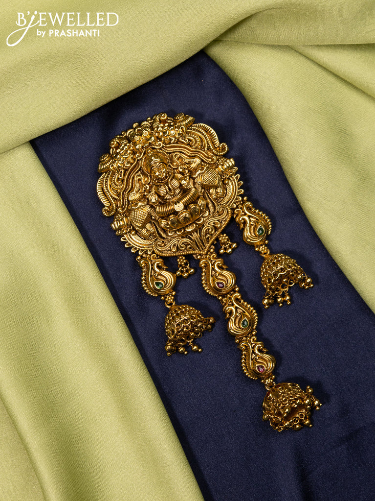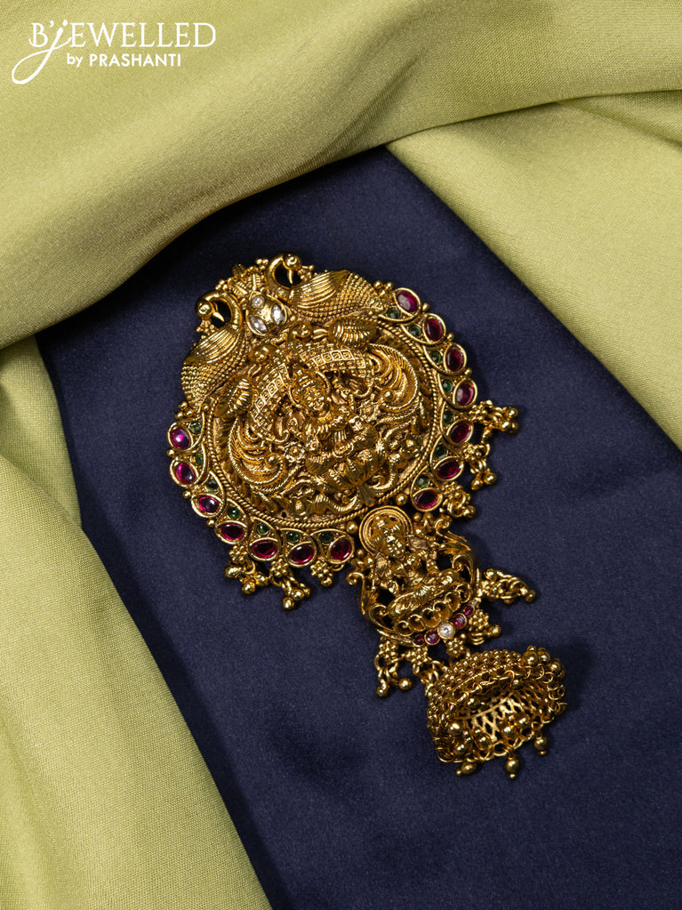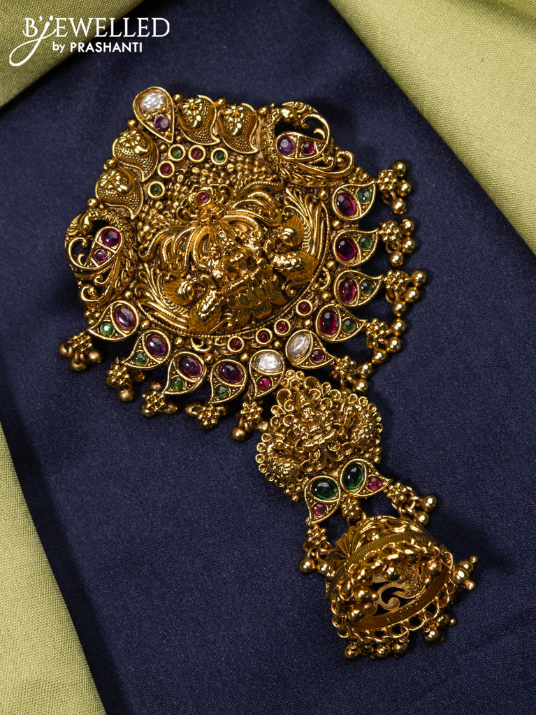 Antique jada billai lakshmi & peacock design with kemp stones and golden beads hanging