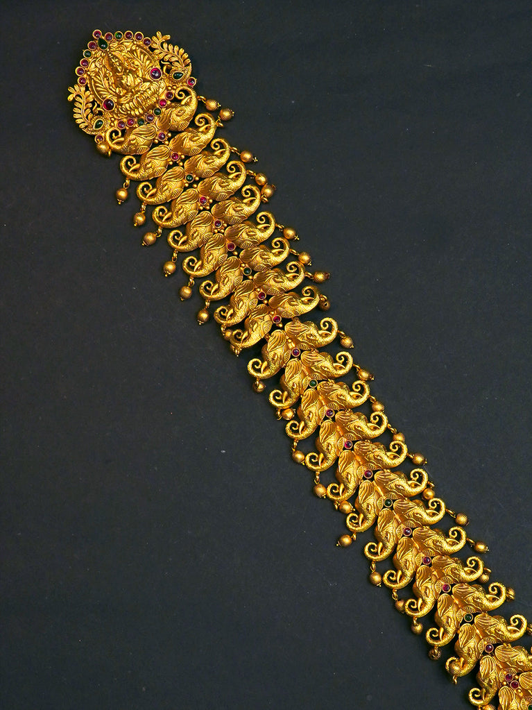 Antique maang tikka lakshmi design with kemp & cz stones and pearl hangings