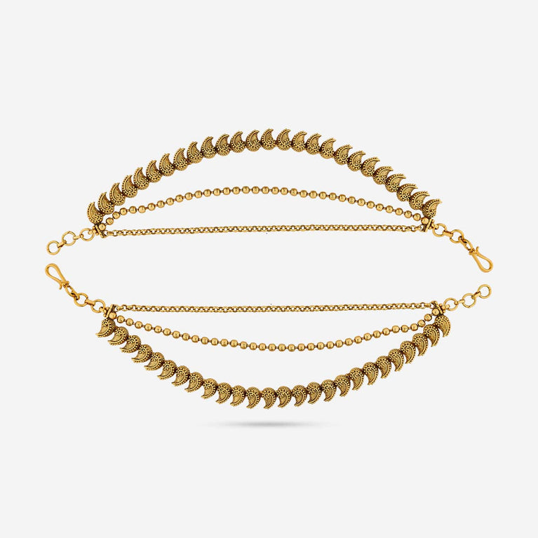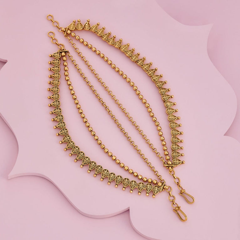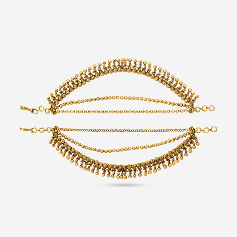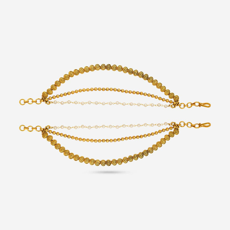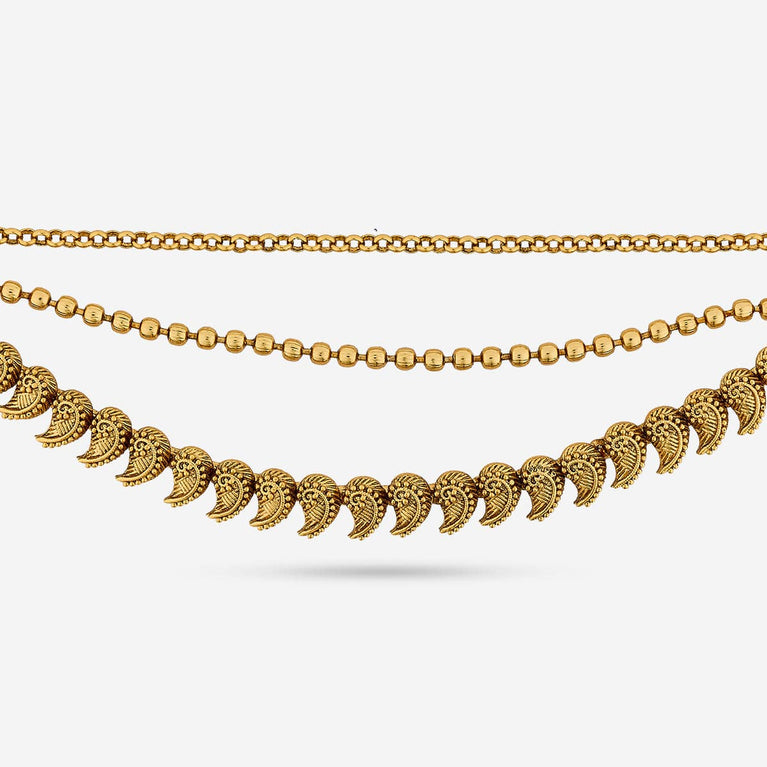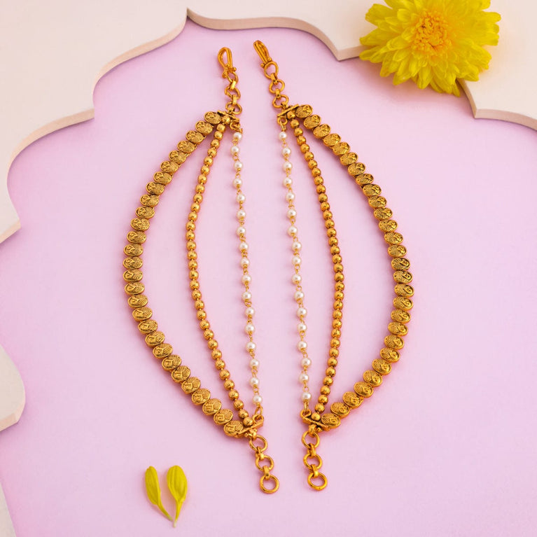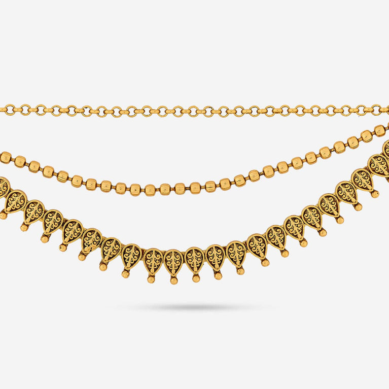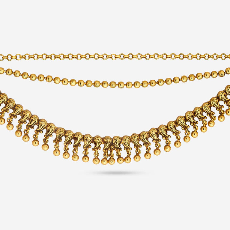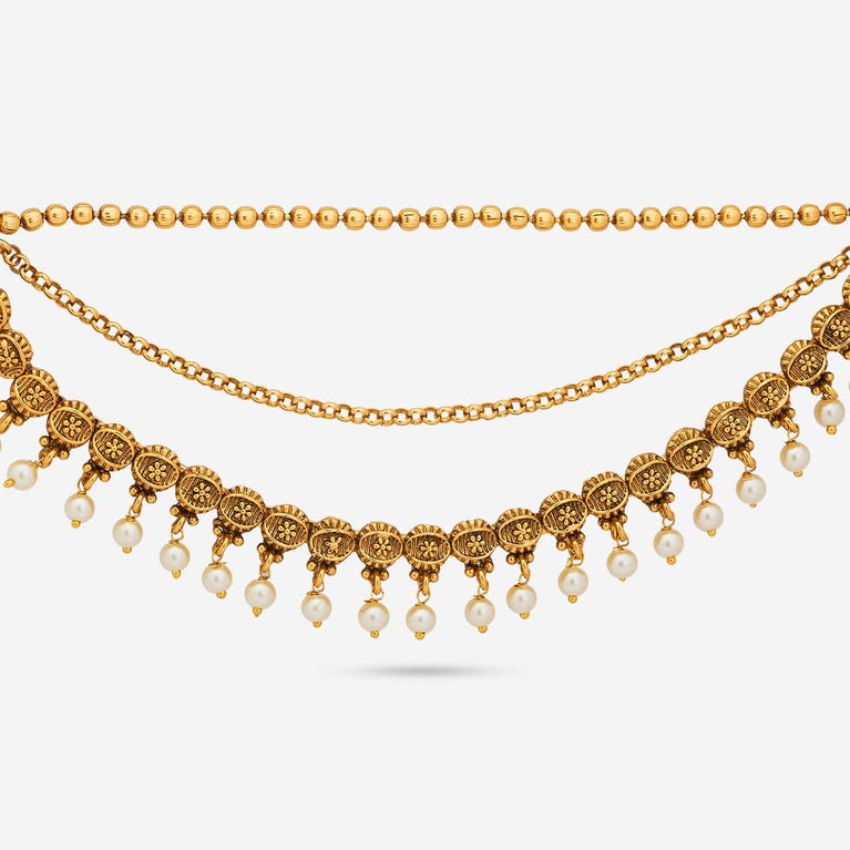 Antique multilayer beaded haaram lakshmi pendant with jadau kundan stones and pearl & golden beads hanging
