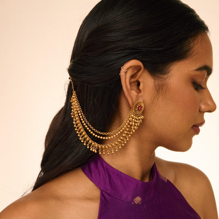 Antique medium size jhumka with kemp & cz stones and pearl hangings