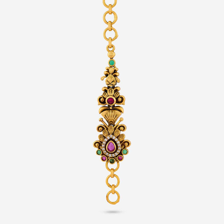 Antique medium size jhumka peacock design with kemp & cz stones and pearl hangings