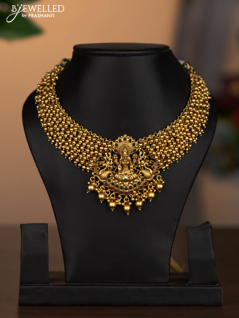 Antique necklace lakshmi design with cz stones and golden beads hanging