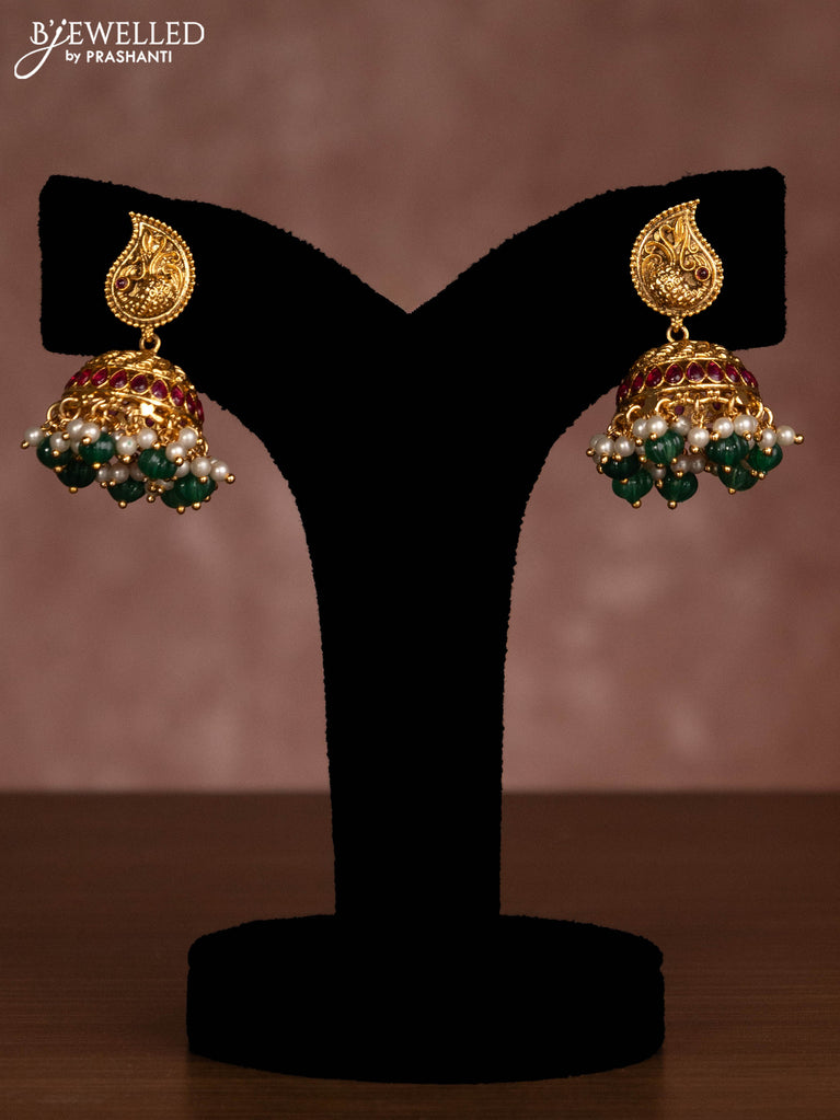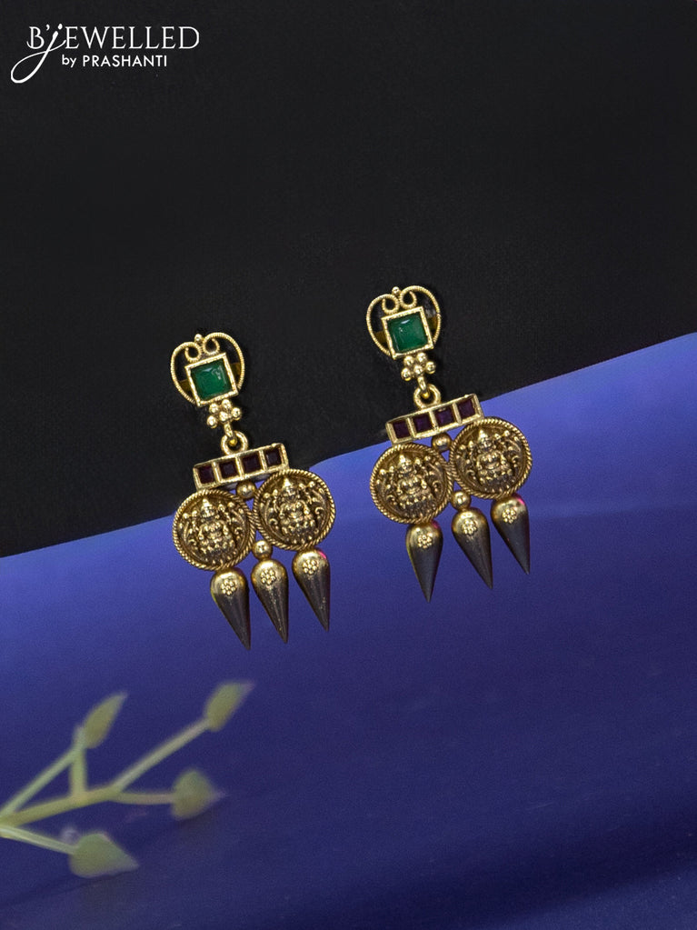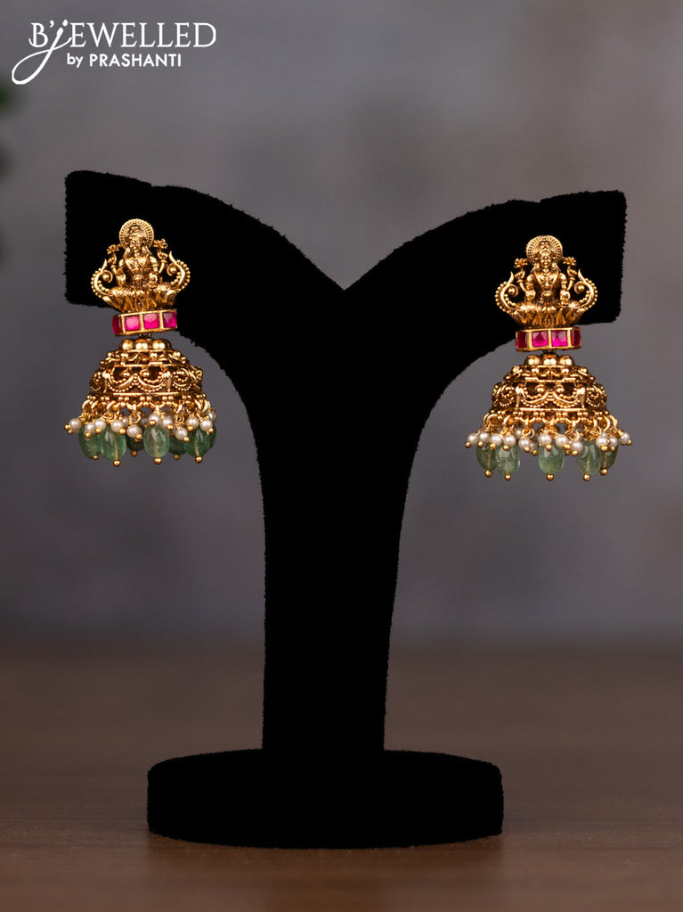 Antique necklace lakshmi design with kemp stones and golden beads hanging