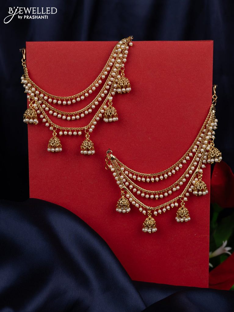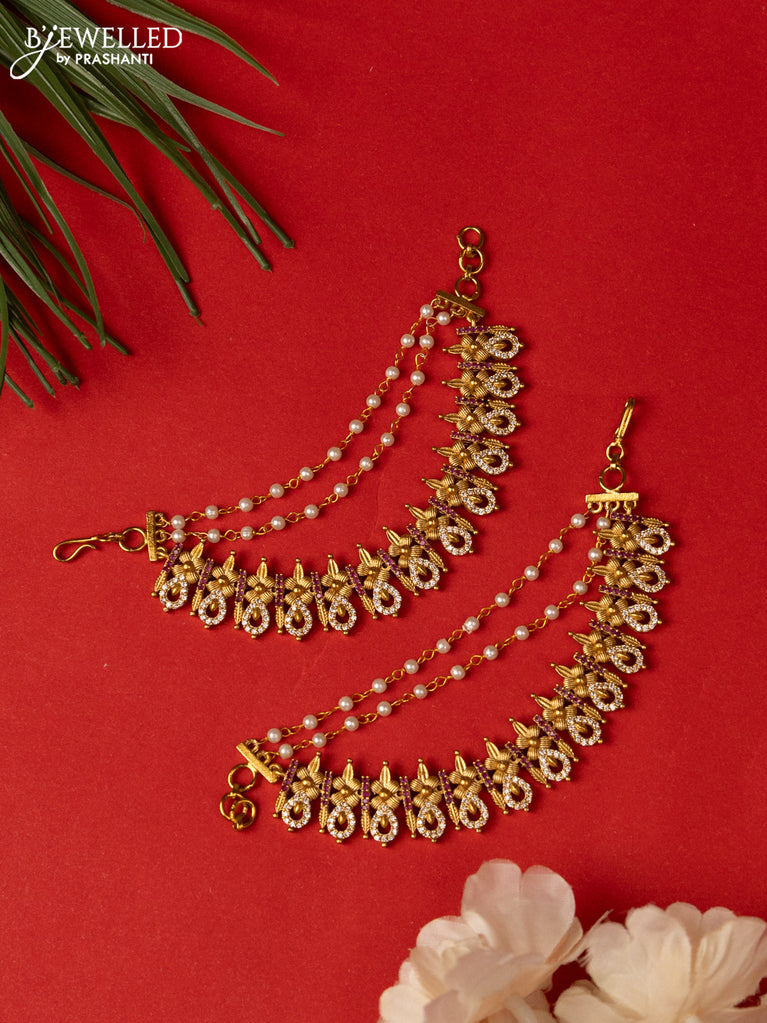 Antique triple layer mattal with maanga pattern kemp cz stones and pearls