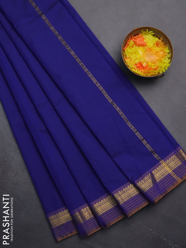 Arani semi silk saree blue and dual shade of violet with allover copper zari weaves and zari woven border