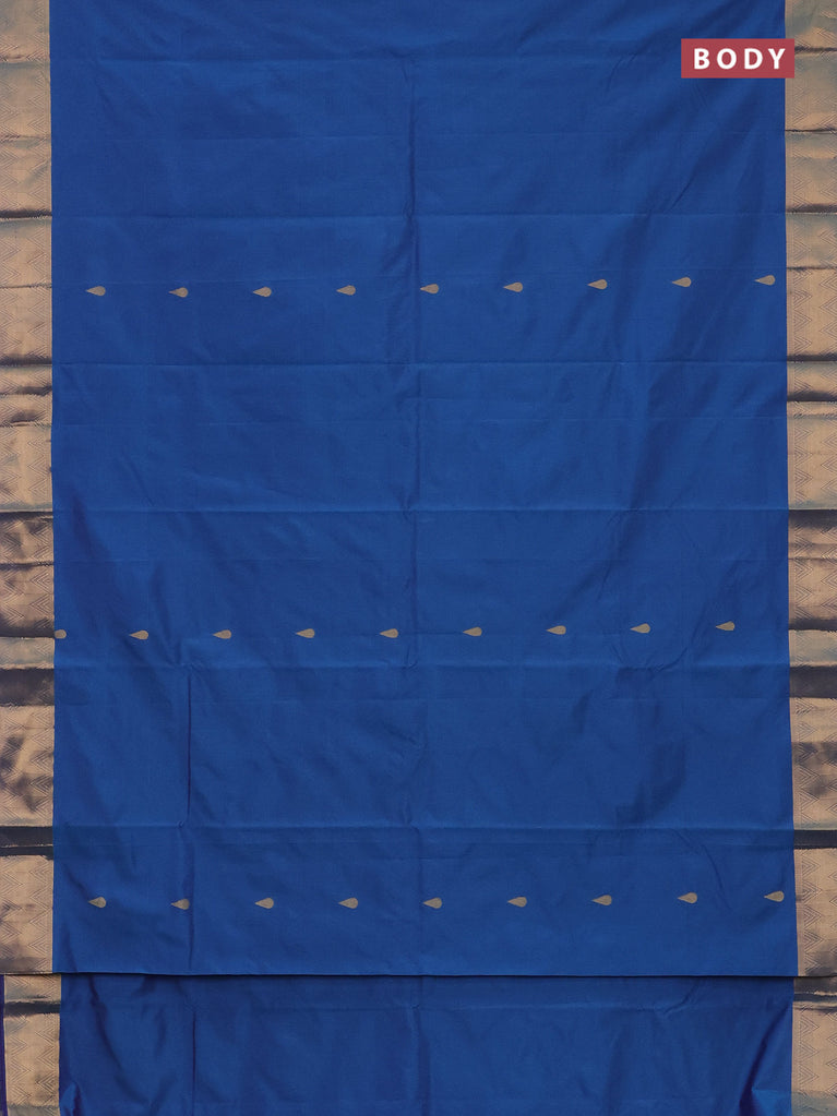 Arani semi silk saree dark blue with rudhraksha & paisley zari woven buttas and zari woven border
