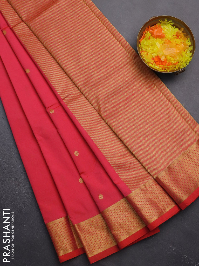 Arani semi silk saree dark pink with rudhraksha & paisley zari woven buttas and zari woven border
