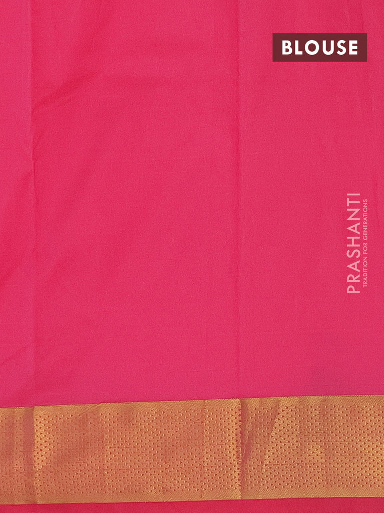 Arani semi silk saree dark magenta pink with silver zari woven buttas in borderless style