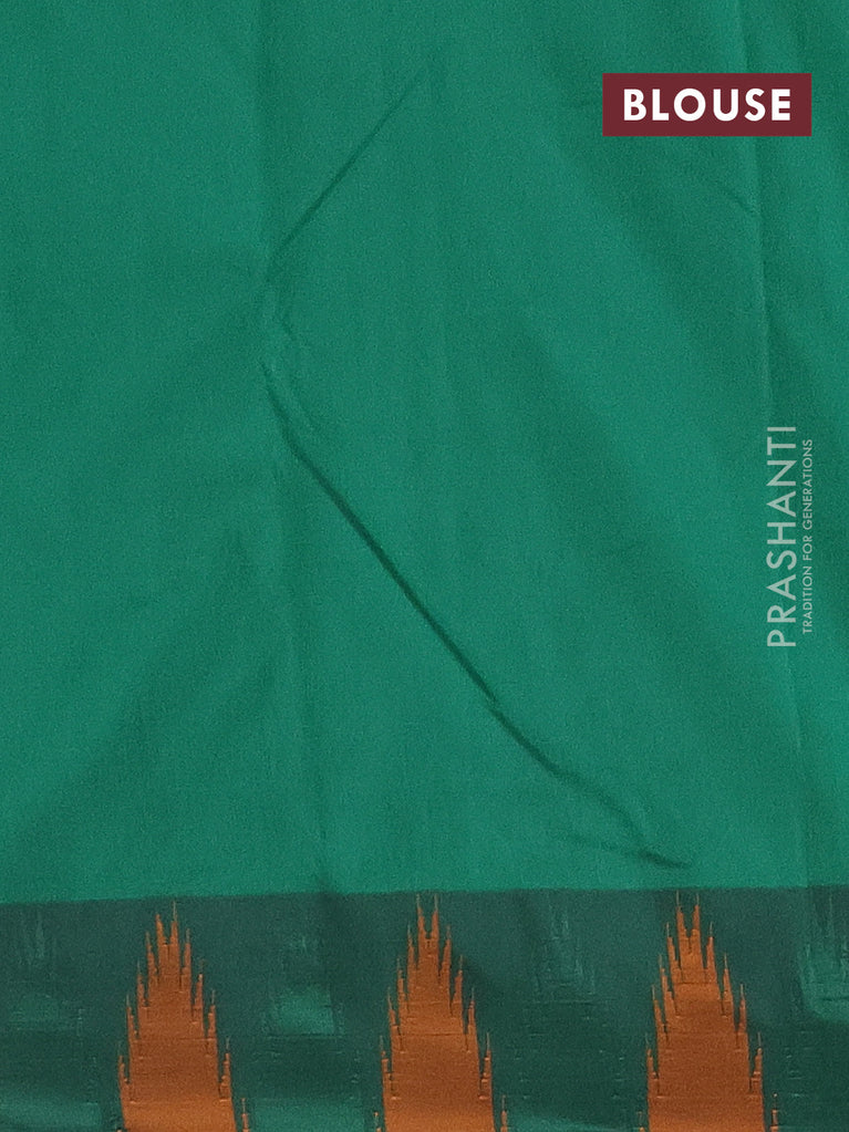Arani semi silk saree dark sap green with allover zari weaves in borderless style