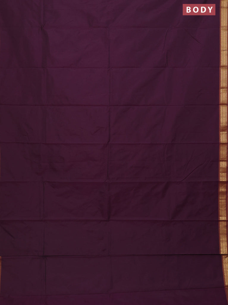 Arani semi silk saree deep purple and dark mustard with plain body and zari woven simple border