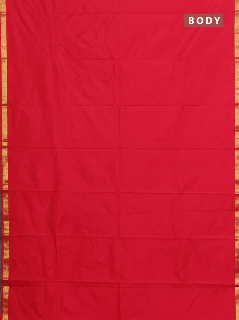 Arani semi silk saree dark pink with plain body and zari woven border