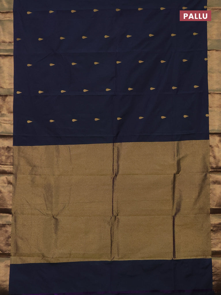 Arani semi silk saree dual shade of greenish violet with zari woven buttas and zari woven border