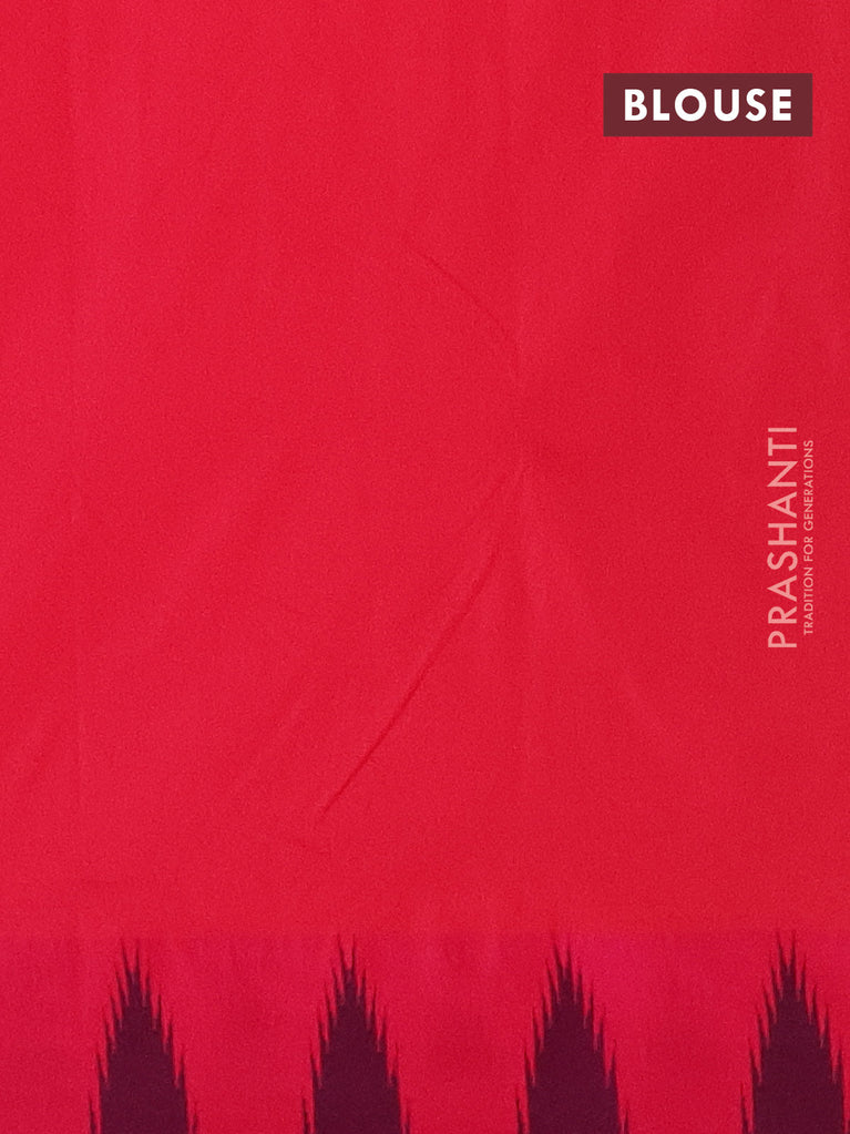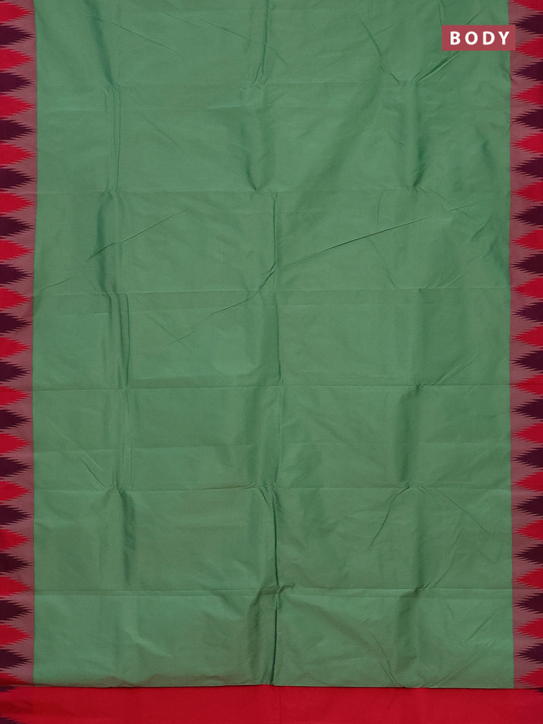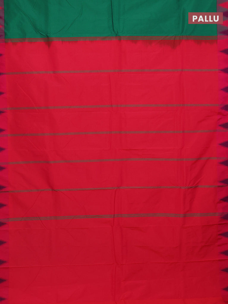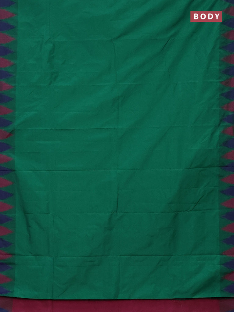 Arani semi silk saree green and dual shade of magenta pink with plain body and temple design border